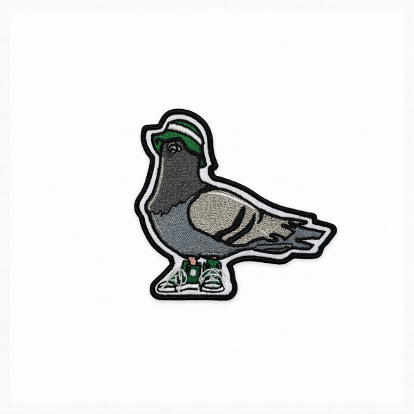 Diseño de 7,5 cm aprox inspirado en una paloma urbana con estética street. Estilo ilustrado con detalles en indumentaria.