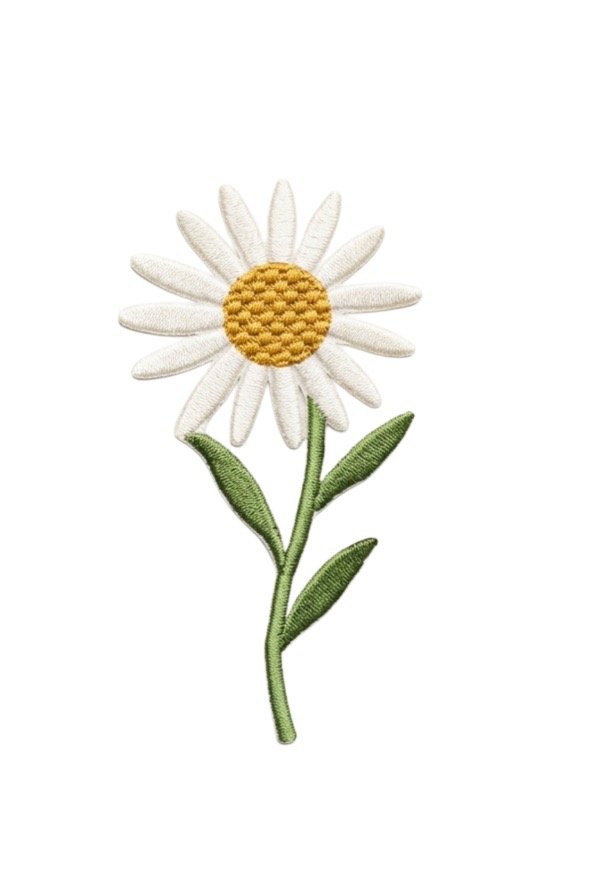 Diseño de 9–10 cm aprox con forma de margarita. Composición limpia de estilo botánico con acabado delicado. Disponible en variantes de color.